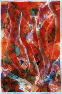 At the age of fourty Himani gave up her profession and her securities as teacher and speach therapist and started a new life. For many years she lived in Asia, where she experienced new and different approaches to living. In her creative expression through colours, she was guided by Meera Hashimoto (Author of "ReAwakening of Art"). Himani gave exhibitions in Italy, India, Taiwan and Portugal, where she settled few years ago. She is also teaching Energy Work and Meditation to enter one´s inner world. Himani´s paintings reflect her experiences of emotions, issues or observations. Through seeing and sensing the colours, through receiving their energy, the pictures can vibrate, come to life and enrich your inner and outer space